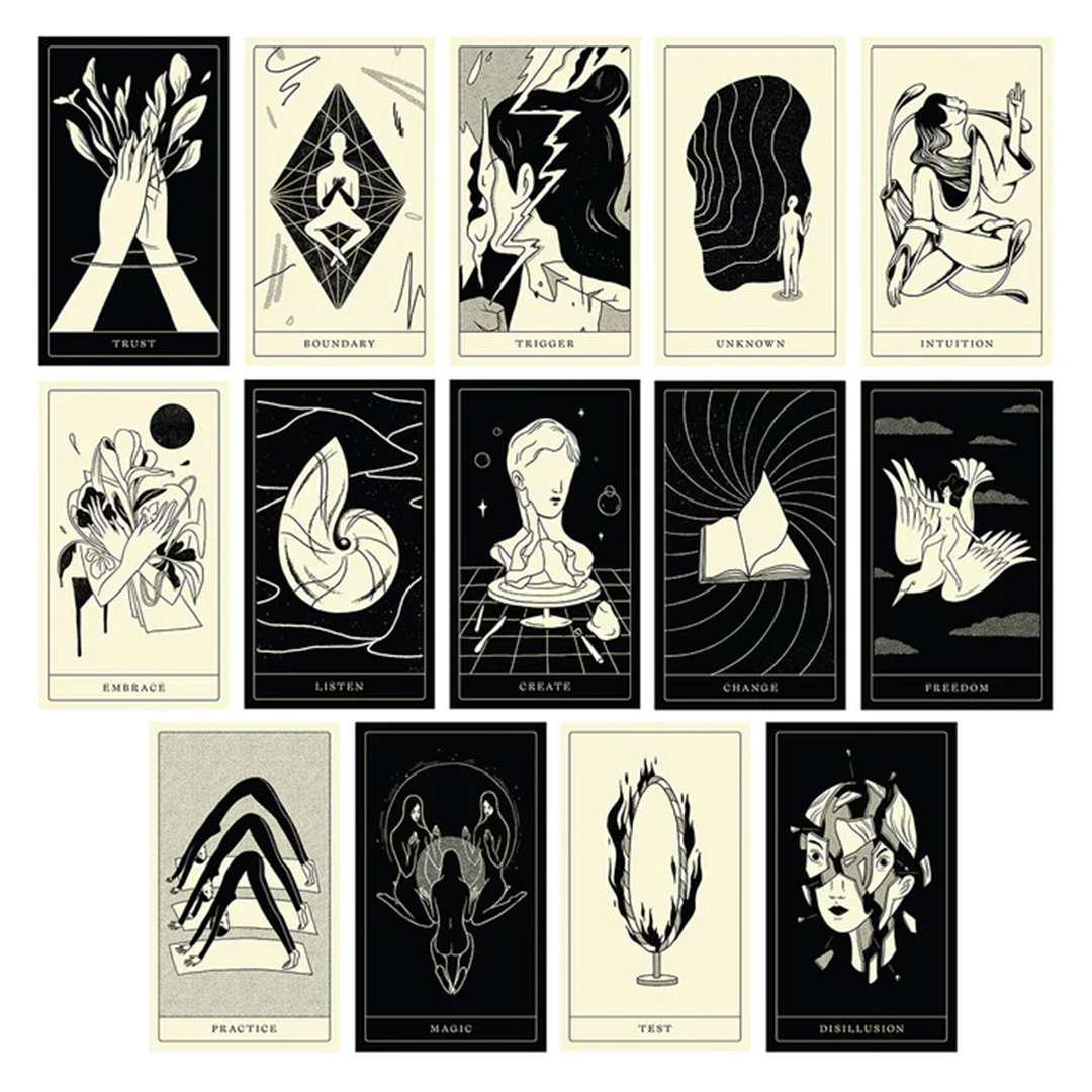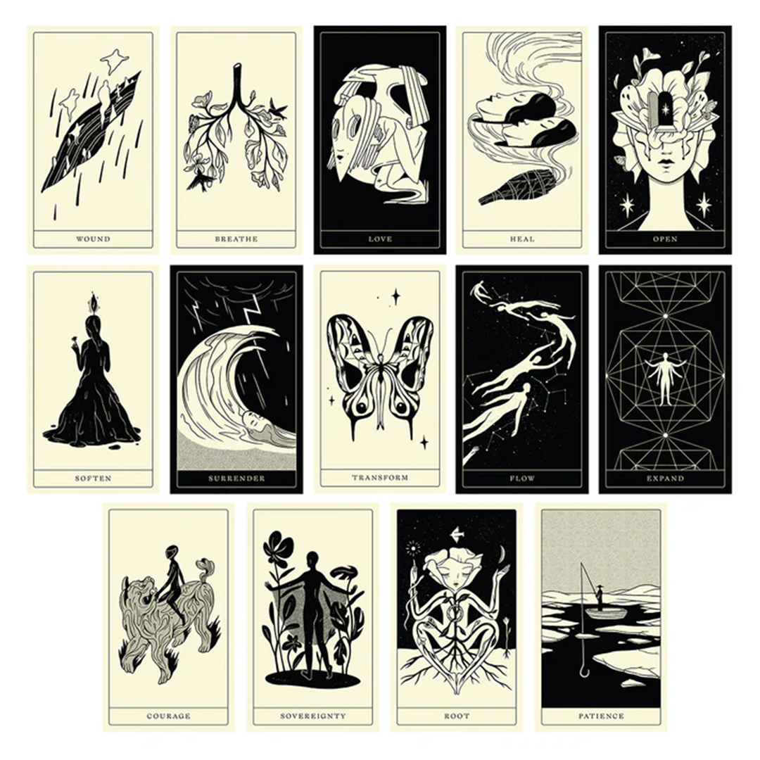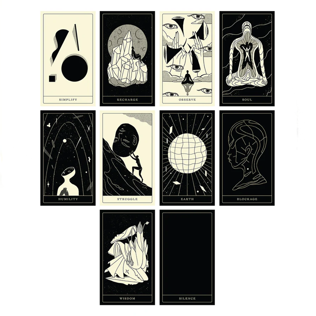 Diese kraftvolle Botschaft der Vereinigung, die sich durch die Tabelle der Elemente zieht, inspirierte Uusi zur Schaffung von „ Materia Prima: Ein Ausdruck der Materie“. Dieses Deck ist ein Ausdruck des Periodensystems. Jedes ausgewählte Element erhält seine Rolle im kosmischen Drama des Lebens und beschwört Materie in der gefühlvollen, spielerischen Sprache der Vorstellungskraft.