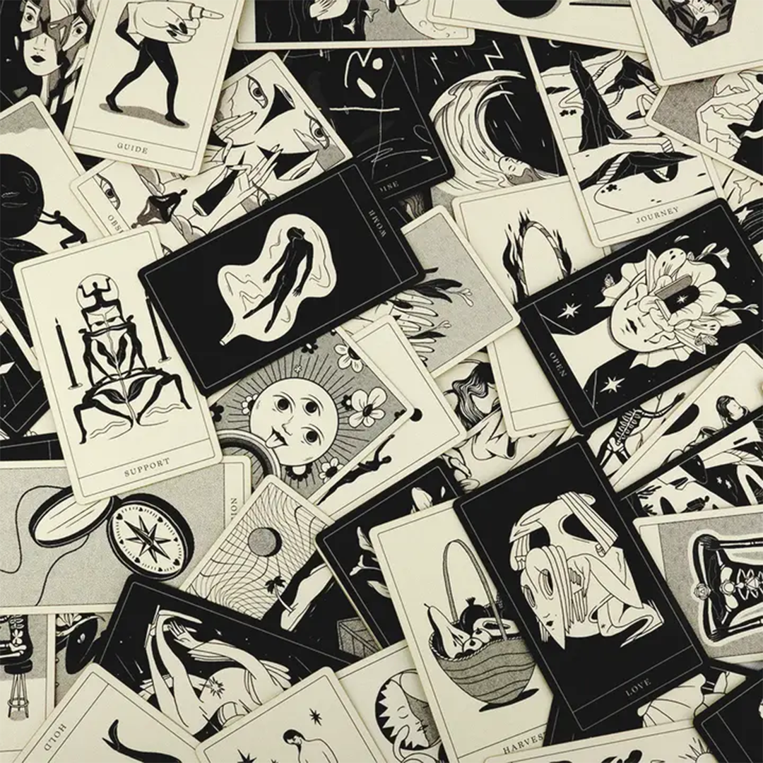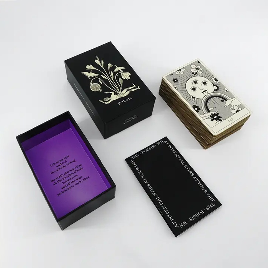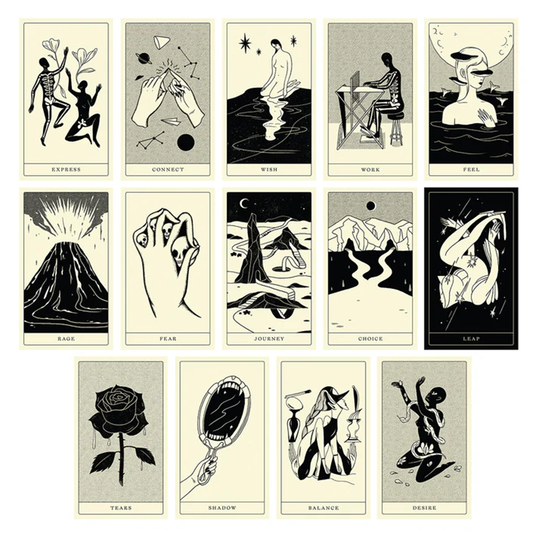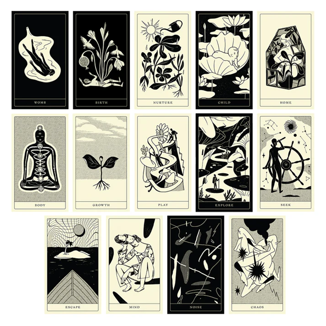 Diese kraftvolle Botschaft der Vereinigung, die sich durch die Tabelle der Elemente zieht, inspirierte Uusi zur Schaffung von „ Materia Prima: Ein Ausdruck der Materie“. Dieses Deck ist ein Ausdruck des Periodensystems. Jedes ausgewählte Element erhält seine Rolle im kosmischen Drama des Lebens und beschwört Materie in der gefühlvollen, spielerischen Sprache der Vorstellungskraft.