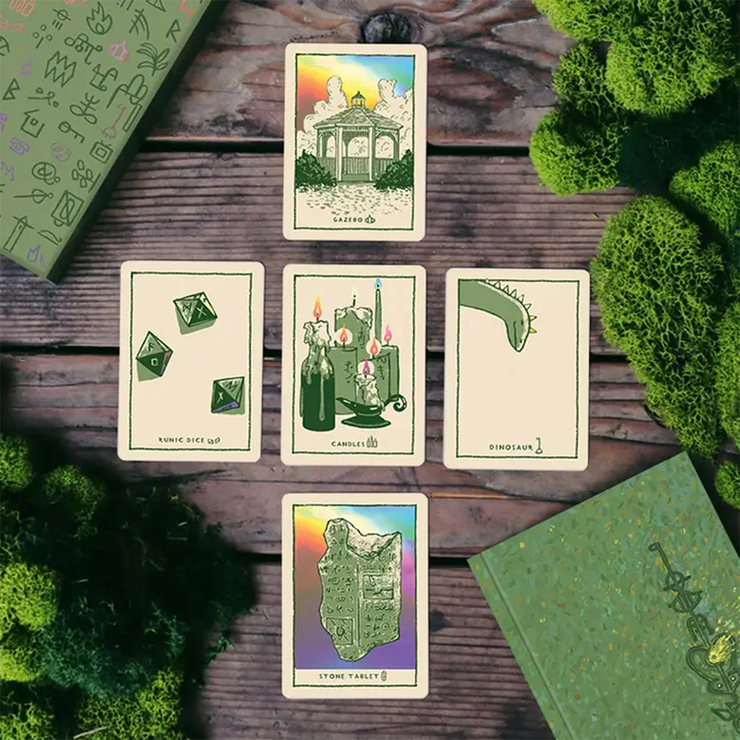 - DIE KARTEN: 79 Karten, jede ist ca. 7 x 12 cm groß und alle haben die gleiche Rückseite. Die Karten werden mit Tinten höchster Qualität auf strapazierfähigem, mattem Karton gedruckt, mit einer matten UV-Schutzschicht versehen und mit spiegelähnlichem Metallic-Silber umrandet.
