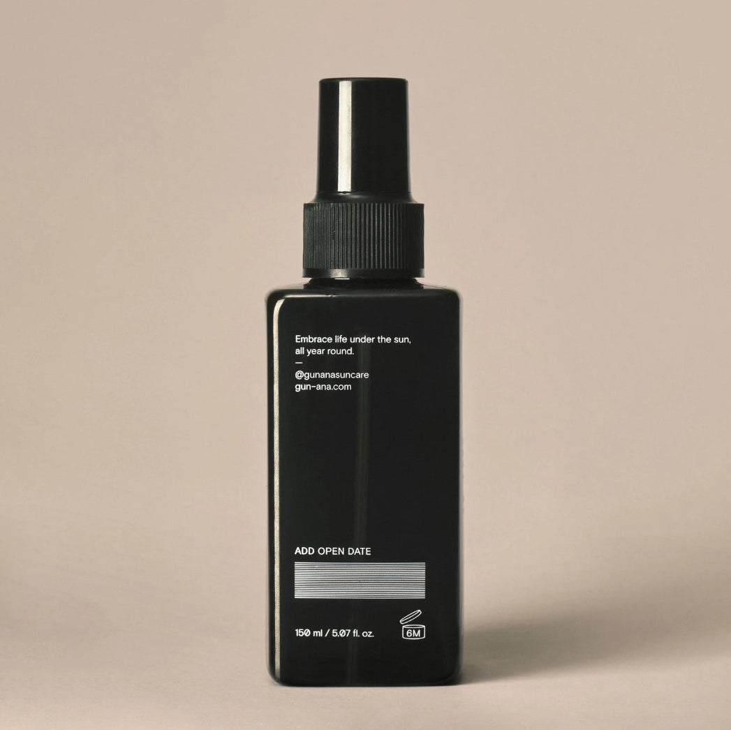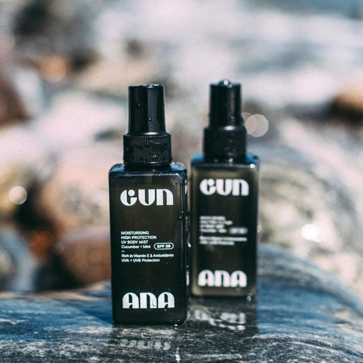 Gun Ana UV Body Mist SPF 30 ist von Natur aus wasserbeständig und schadet den Ozeanen nicht. Dieser Nebel ist ein zweiphasiges Produkt auf der Basis von Wasser und Ölen. Vor Gebrauch die Flasche gut schütteln!