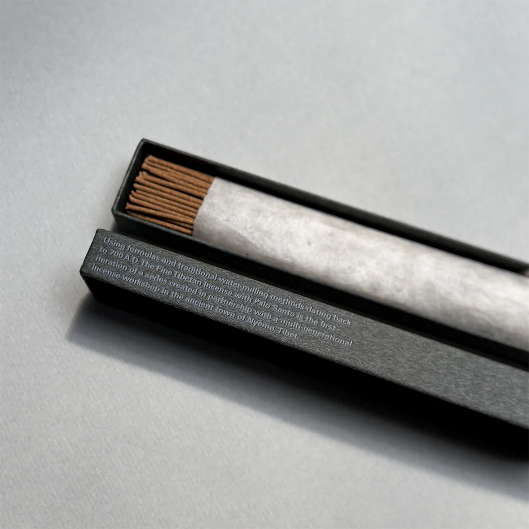 - Tuckbox auf schwerem Papier mit Goldfolienprägung gedruckt.
