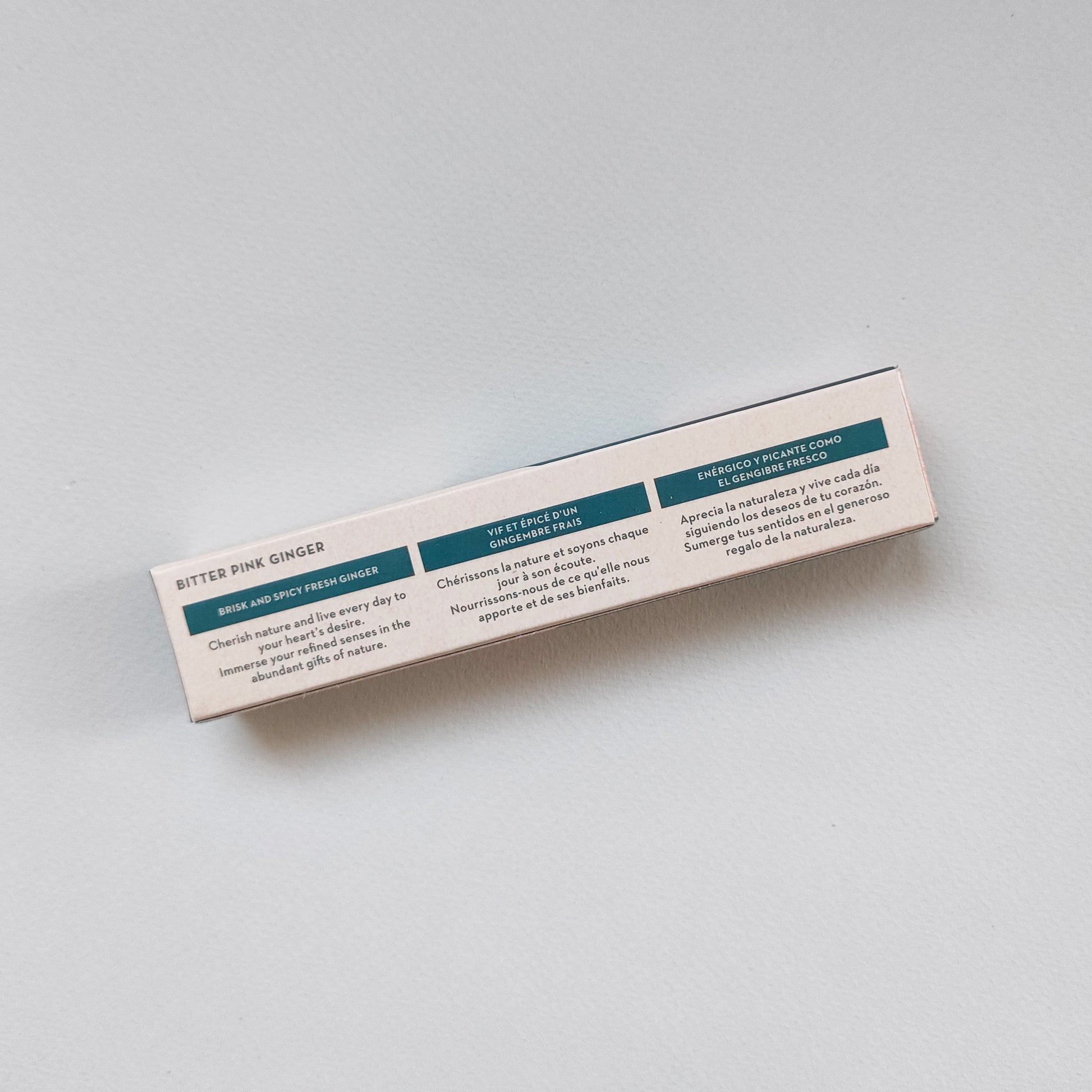 Duft: Ein berauschender Duft von kühlem, würzigem Ingwer, ergänzt durch das würzige Aroma von Zimt, Nelken und grünem Kräuteraroma von Zitronengras, gemischt mit der Süße von Rose.