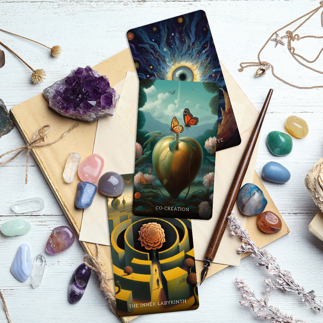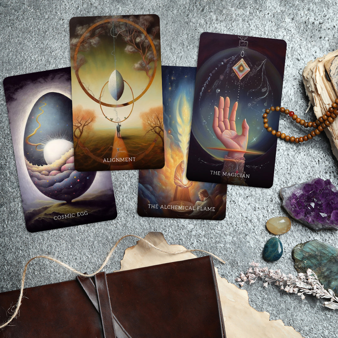 Diese kraftvolle Botschaft der Vereinigung, die sich durch die Tabelle der Elemente zieht, inspirierte Uusi zur Schaffung von „ Materia Prima: Ein Ausdruck der Materie“. Dieses Deck ist ein Ausdruck des Periodensystems. Jedes ausgewählte Element erhält seine Rolle im kosmischen Drama des Lebens und beschwört Materie in der gefühlvollen, spielerischen Sprache der Vorstellungskraft.