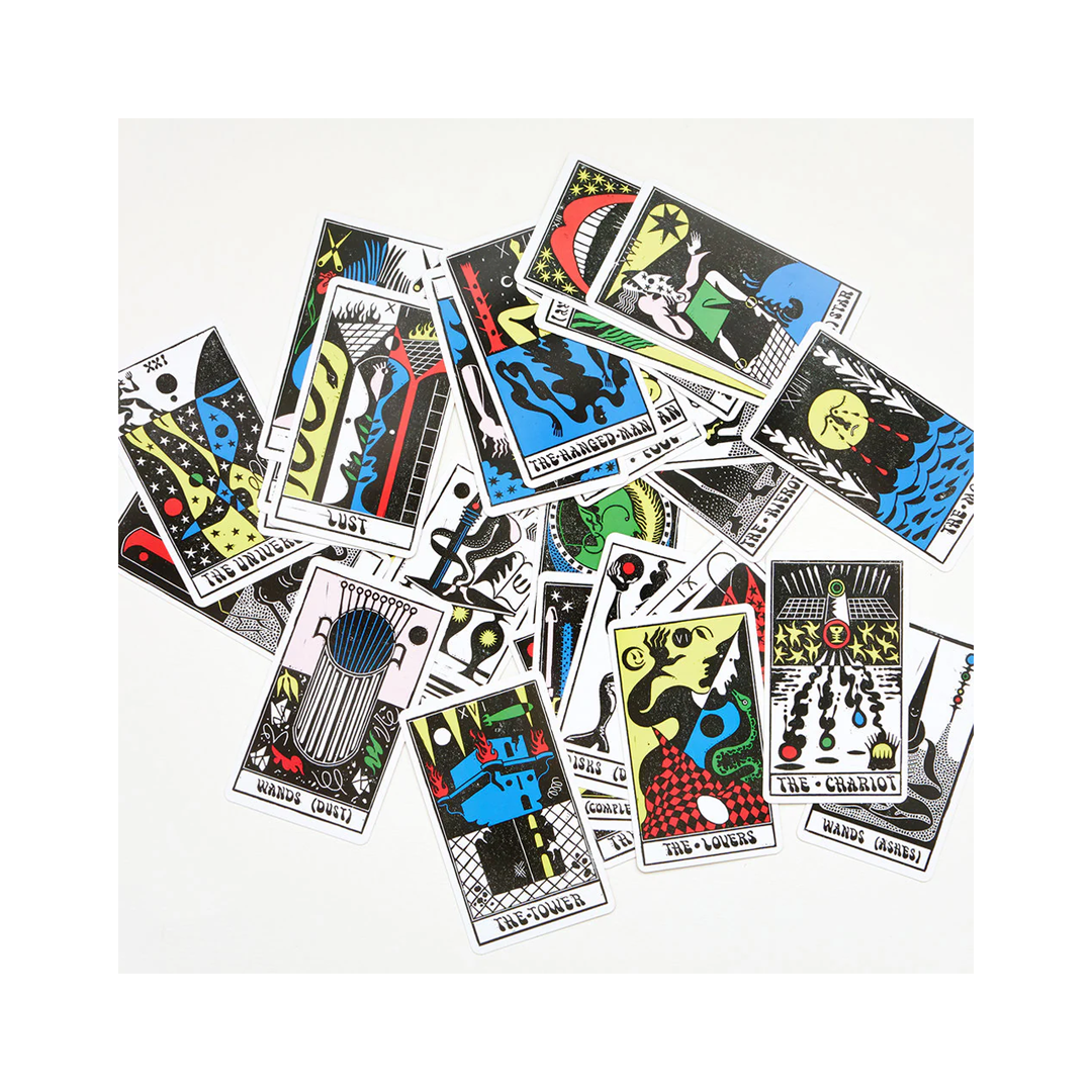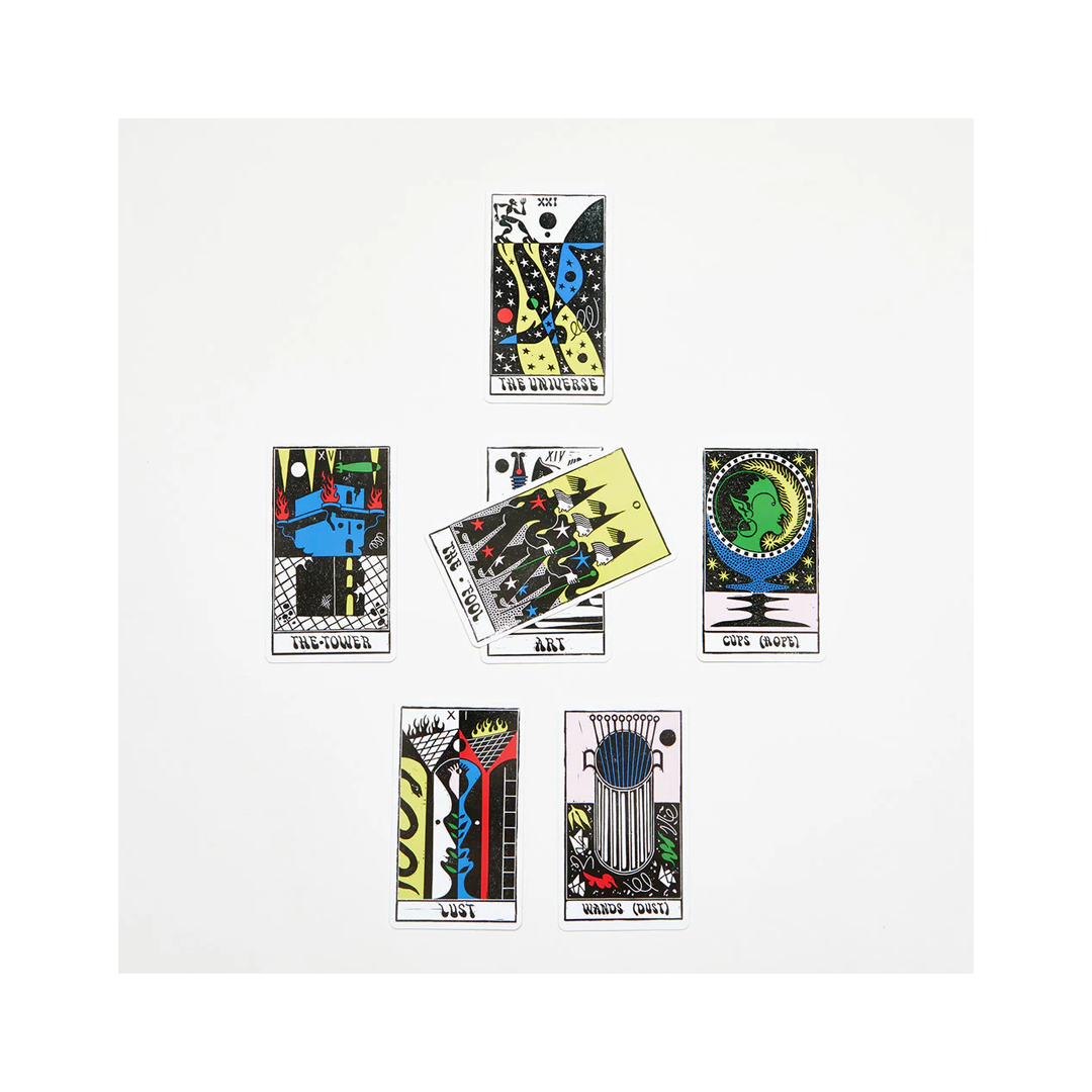 Diese kraftvolle Botschaft der Vereinigung, die sich durch die Tabelle der Elemente zieht, inspirierte Uusi zur Schaffung von „ Materia Prima: Ein Ausdruck der Materie“. Dieses Deck ist ein Ausdruck des Periodensystems. Jedes ausgewählte Element erhält seine Rolle im kosmischen Drama des Lebens und beschwört Materie in der gefühlvollen, spielerischen Sprache der Vorstellungskraft.