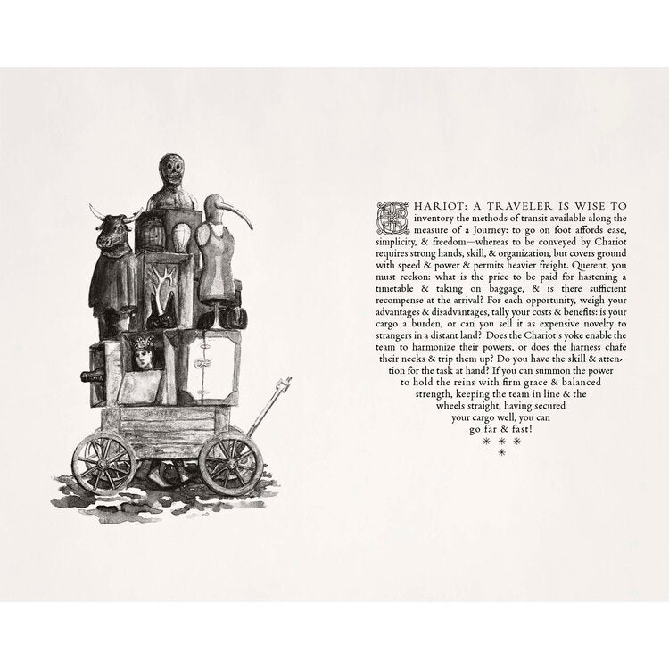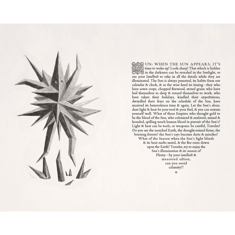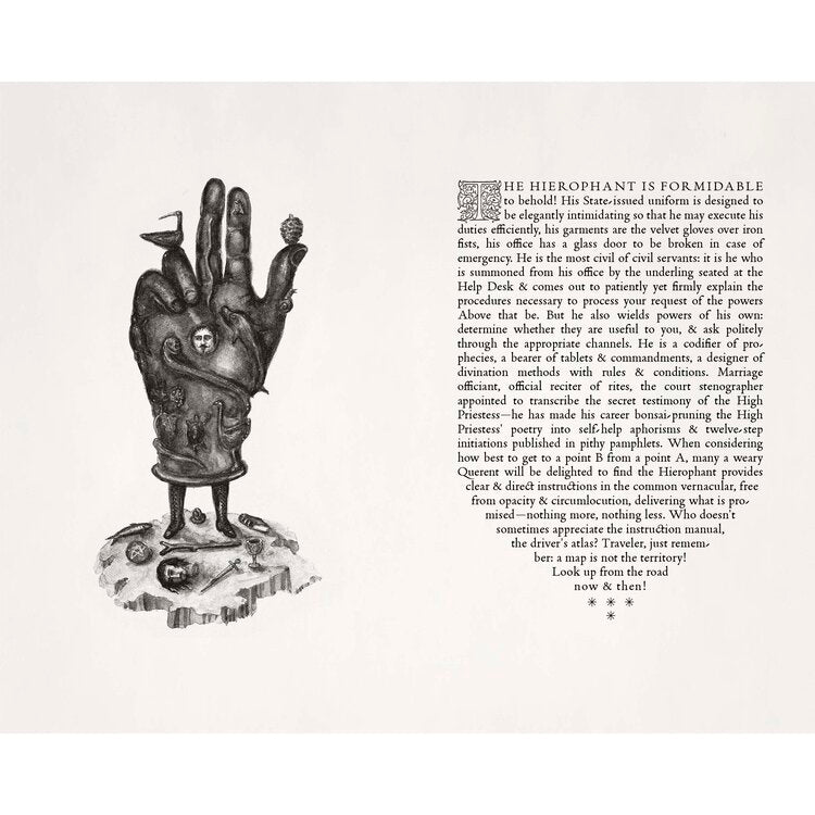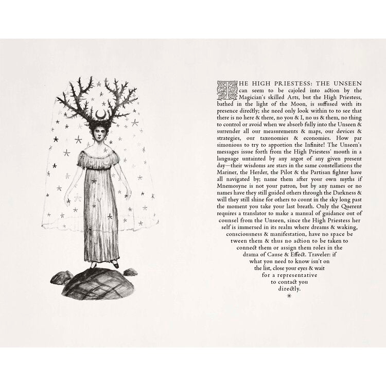 Karneval am Ende der Welt Tarot ist ein zeitgenössisches Tarotdeck, ein Loseblattbuch des Schicksals, das auf denselben Mythologien basiert, die wir in jüngsten Fotografien, Gemälden und Buchprojekten erforscht haben. Im Jahr 2006 beinhaltete unser Multimedia-Projekt Eisbergfreistadt ein Pokerdeck, das, wenn es in einer langen Reihe ausgelegt wurde, eine panoramische Erzählung über Klimawandel und Umweltzerstörung enthüllte. Im Jahr 2017, als der Einsatz des Großen Spiels immer größer wurde und das Anthropozän exponentiell Veränderungen und Chaos in das Leben vieler Menschen auf der ganzen Welt gebracht hat, sind wir von der Herstellung von Karten für heitere Freizeitbeschäftigungen zu Karten für die Wahrsagerei übergegangen: dem Tarot, das in seiner Tradition Die Verwendungsmöglichkeiten wurden konsultiert, um Katastrophen vorherzusagen, Risiken zu antizipieren und Lebensentscheidungen durch Backstage-Zugriff auf das Unsichtbare zu steuern.“
