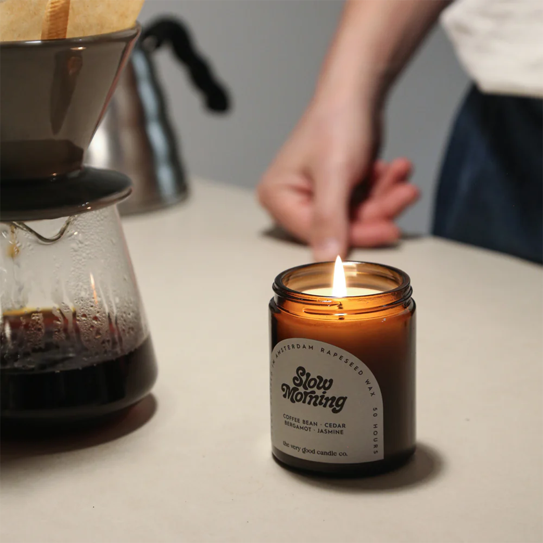 Introducing SLOW MORNING; featuring fresh coffee bean, layered with soft and citrusy bergamot, softened with sensual floral jasmine and a hint of cedarwood for a little bit of warmth. It smells like your favorite time of the day!