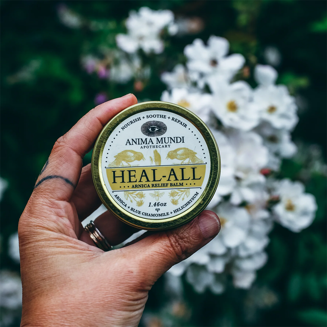 his balm is infused with soothing Arnica and Calendula, as well as essential oils of Blue Chamomile and Helichrysum.