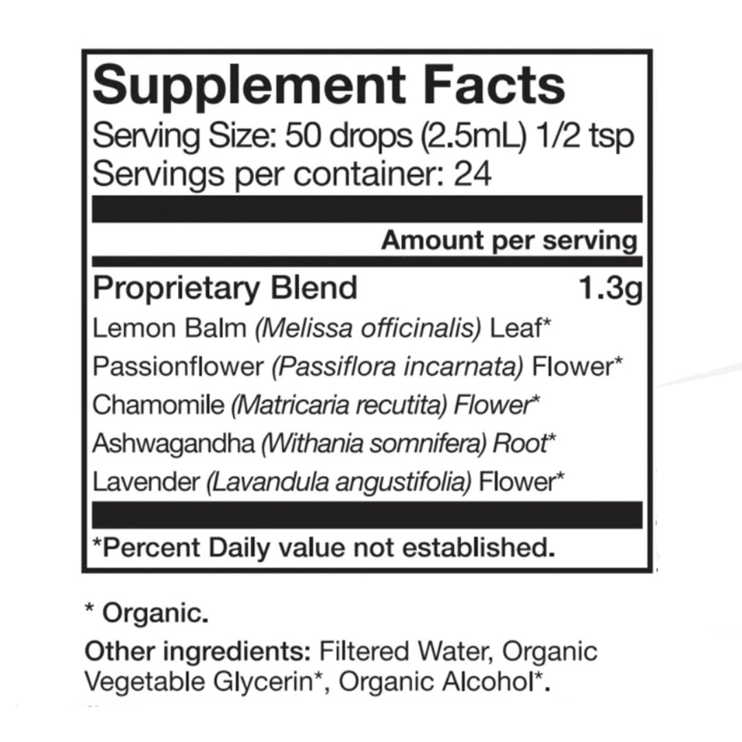 A relaxing tonic blended with well known nervine relaxants such as Lemon Balm, Passionflower, Chamomile, and Lavender, combined with the adaptogenic powers of Ashwagandha.*