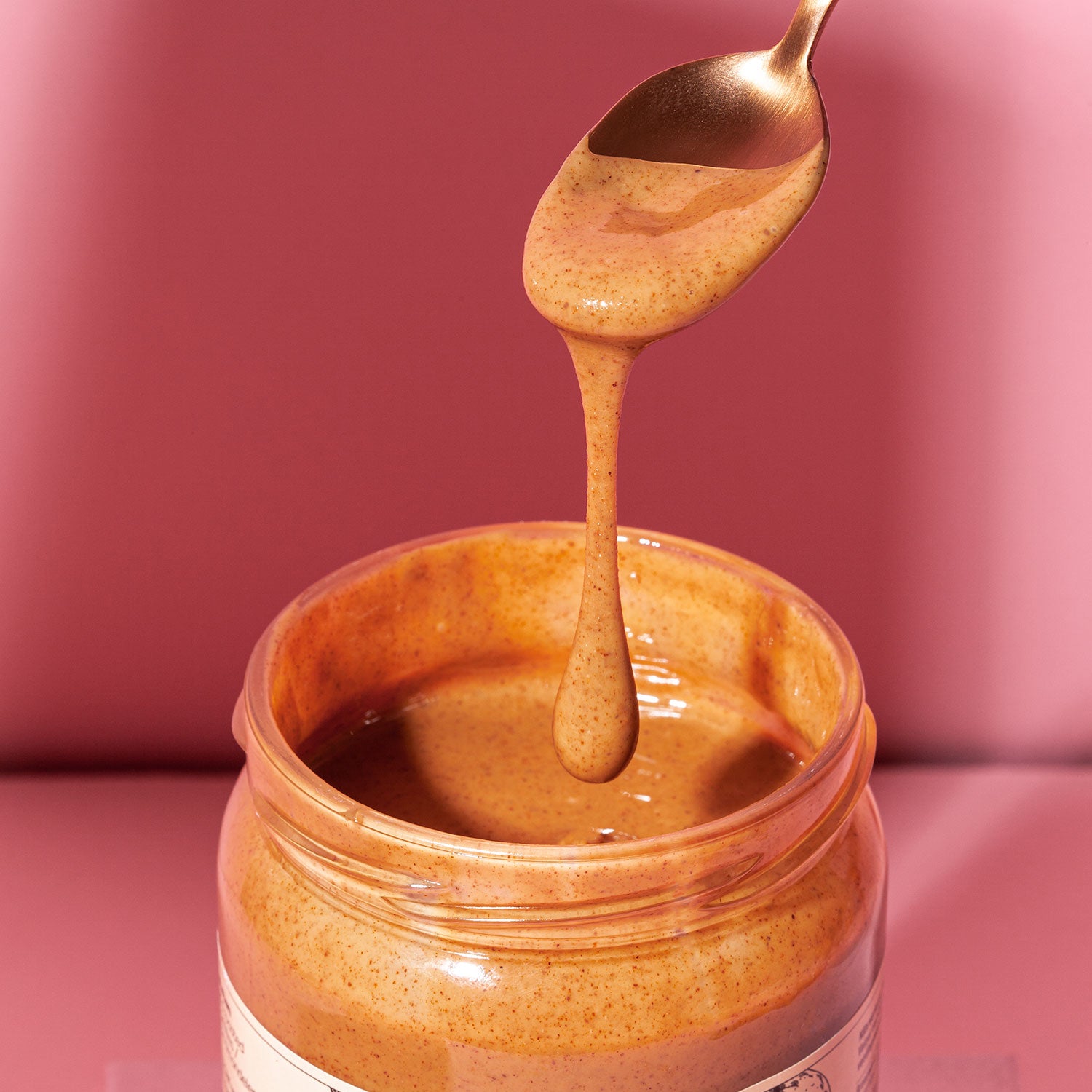 Made from almonds unpeeled, the kernels are not blanched, but lightly roasted instead this gives dark almond butter a stronger taste which will win you over!