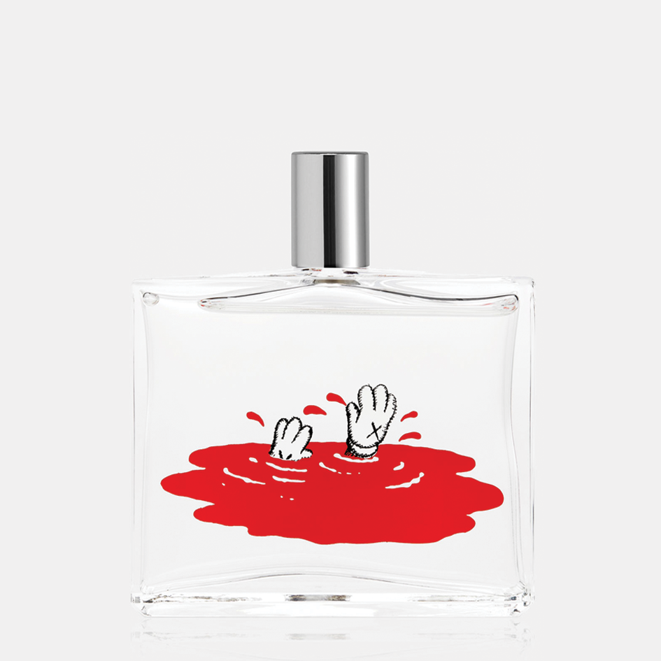 COMME des GARÇONS and KAWS are pleased to present the artist’s first scent, MIRROR. Inspired by KAWS’s multi-faceted practice, MIRROR brings a complex blend of optimistic fragrant notes together in collaboration to create a musky floral scent. The bottle design is a nod to the artist’s iconic COMPANION character who materializes across a variety of medium, from fine art to consumer products, leveling the hierarchies between “high” and “low”.