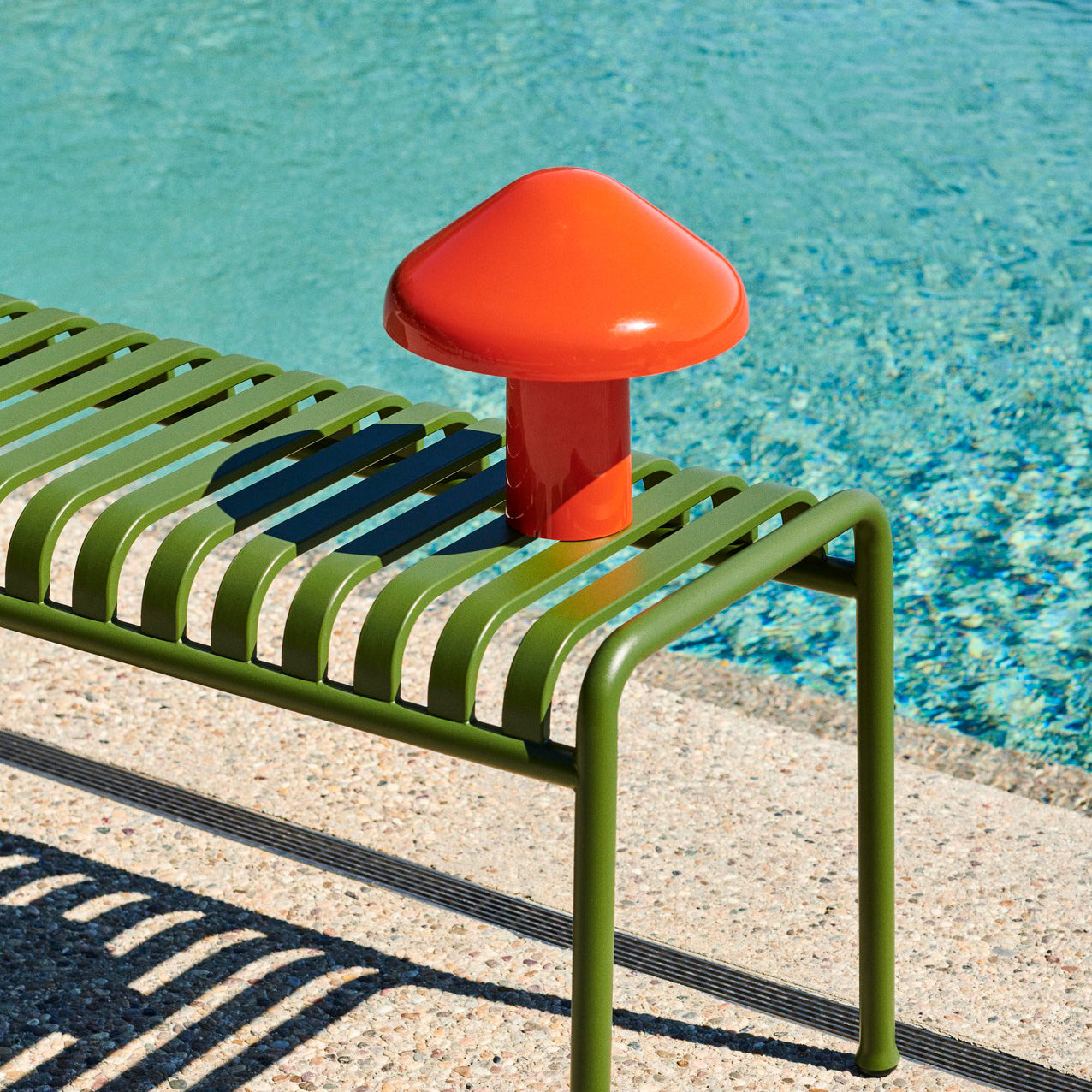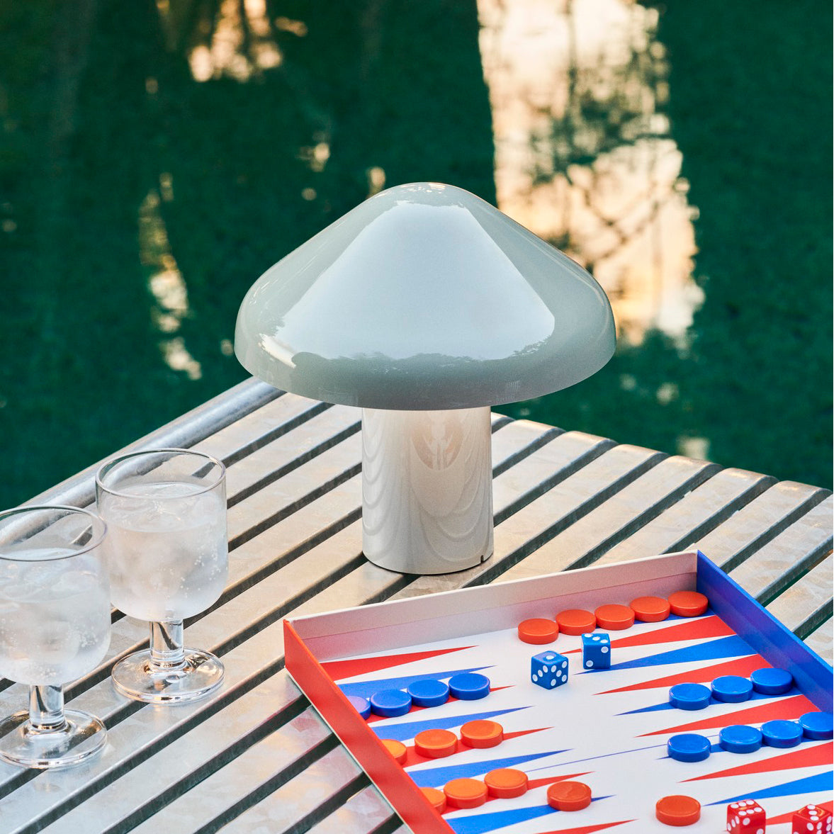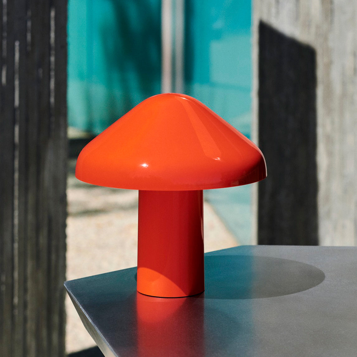 Both the lamp’s base and shade are constructed from a resistant polycarbonate, with a smooth, high gloss finish. The lamp’s light source is concealed inside the shade, behind an opal polycarbonate diffuser, providing an efficient diffused downlight, with a warm, homely glow. The compact, battery-operated design enables the lamp to be moved to different rooms around the house, or taken into the garden and other outside spaces.