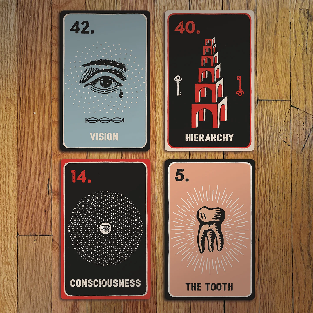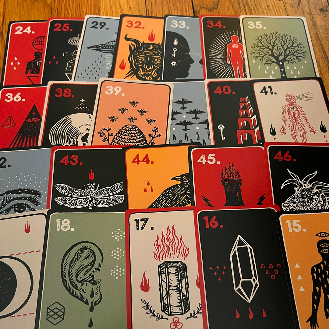 - 54 oracle cards, 7 mini playing cards, 2 add cards