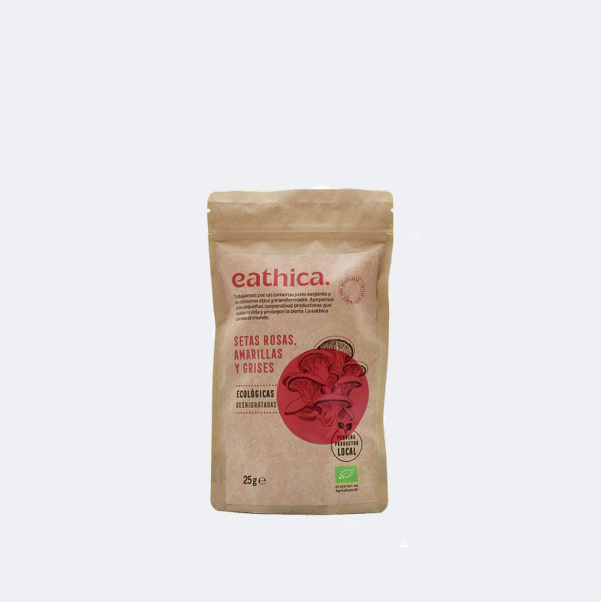 INGREDIENTS: 34% pink mushrooms* (Pleurotus djamor), 33% yellow mushrooms* (Pleurotus citrinopileatus), 33% gray or oyster mushrooms* (Pleurotus ostreatus).