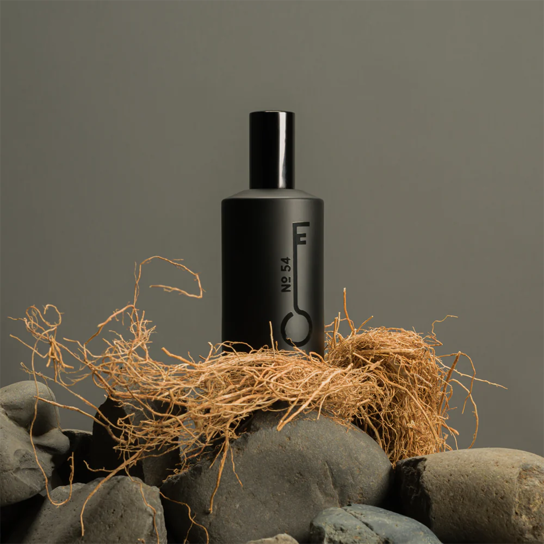 Notes: Fresh coat of varnish on a wooden shed. Uprooted moss, wet dirt and vetiver roots. Burnt car tires on hot asphalt and dry patchouli. Heavy slow-drying oil painting. Icelandic alpine fir, footsteps in frozen grass and salt liquorice. Dirty leather, animalistic musk and ammonia.