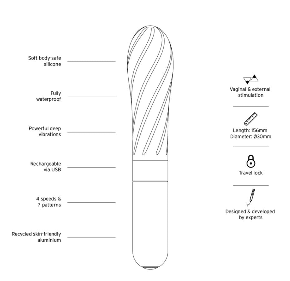 Do you like to feel different sensations deep inside? With a textured surface, powerful vibrations and a uniquely contoured head, Grá will fill you with pleasure and leave you wanting to explore more. Grá’s pattern and texture invites you to explore internal and external stimulation while rumbling through its multiple speeds and patterns.
