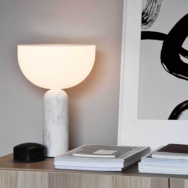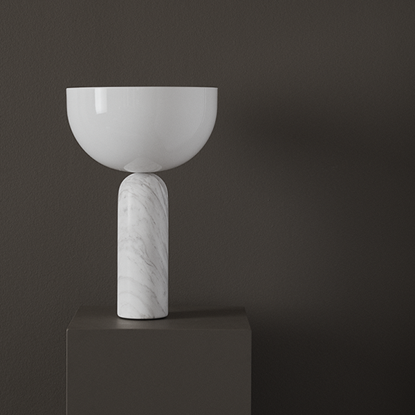 The iconic Kizu Table Lamp expands its weightless balancing act with the addition of a little sibling and a new finish. For those intimate spaces, the new Kizu Small Table Lamp provides the perfect measure of sculptural form and soft illumination. While the addition of a black marble base to the whole family further highlights the kissing point between bold form and floating radiance.