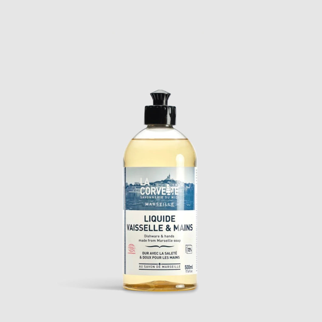 La Corvette has developed a washing-up liquid from its Marseille soap shavings, cooked in a cauldron in Marseille with 100% vegetable oils.