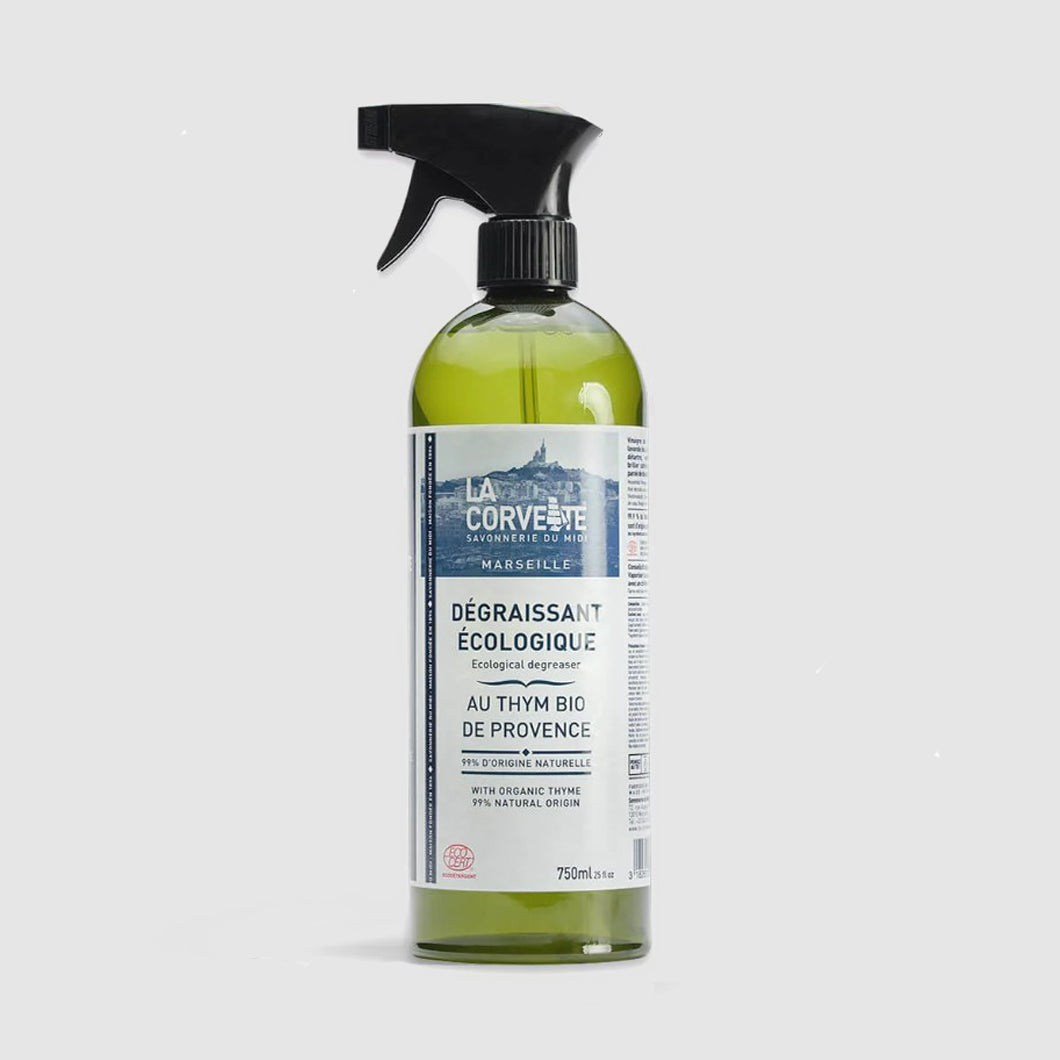 La Corvette Organic Thyme Degreaser dissolves grease and shines on all washable surfaces.