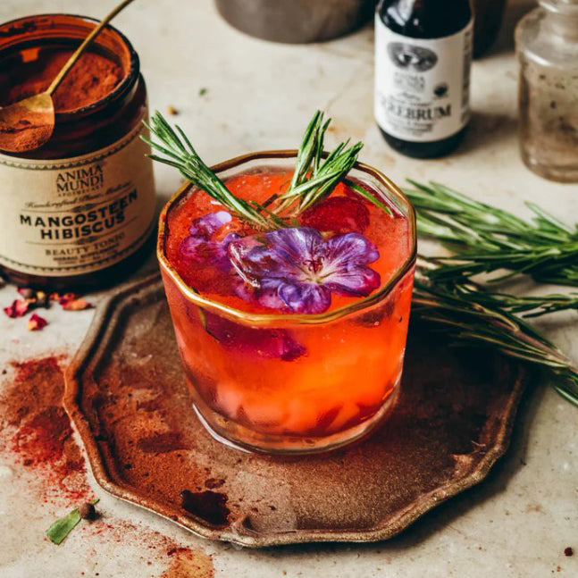 *Organic, Handcrafted Mangosteen Pericarp sourced from Brazil (or Thailand depending on Season), and Hibiscus Flowers from Costa Rica (or other parts of Central America depending on Season)