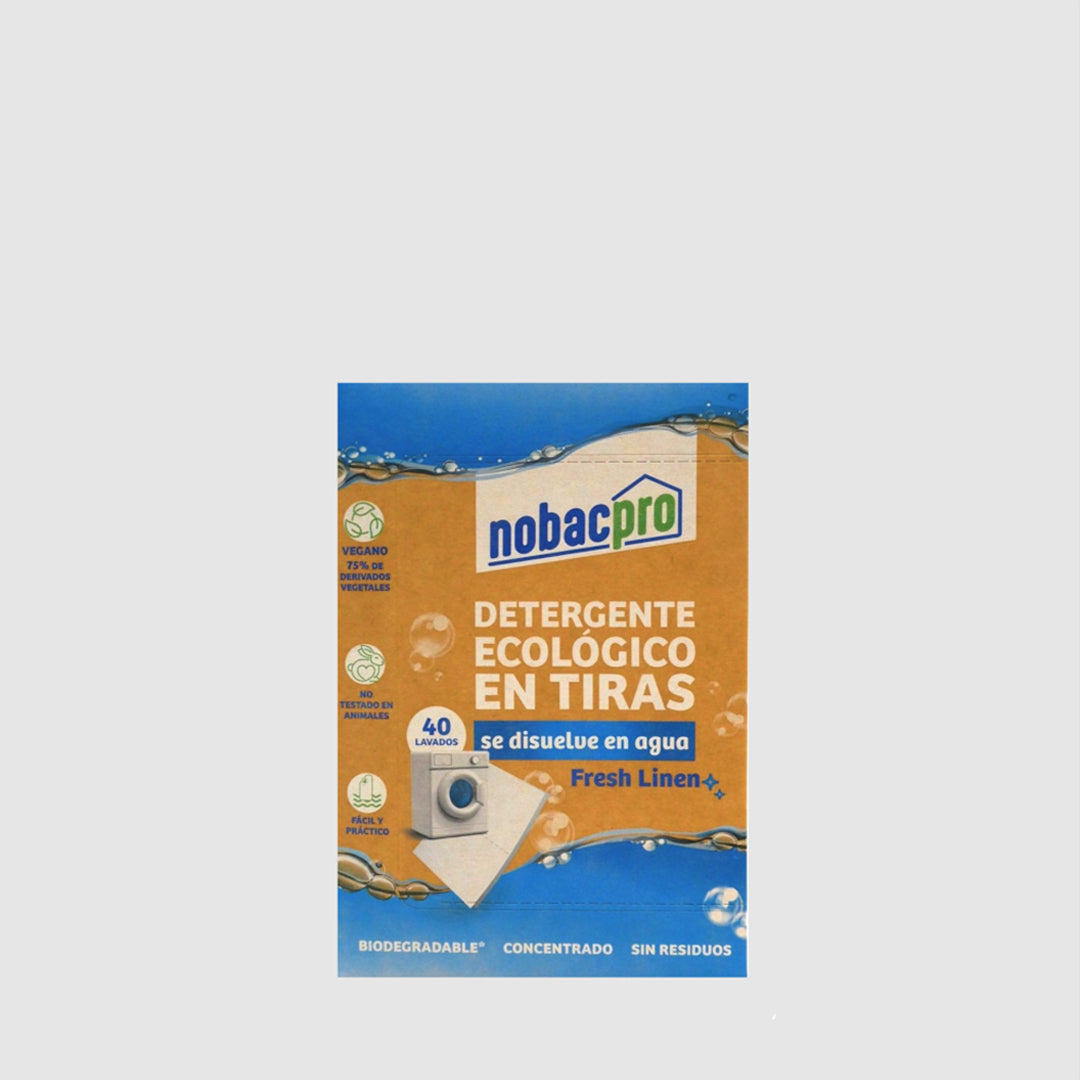 Soluble strips of concentrated, ecological and biodegradable detergent (OECD-301B). Made with natural ingredients, with a vegetable base of up to 75% and enzymatic action.
