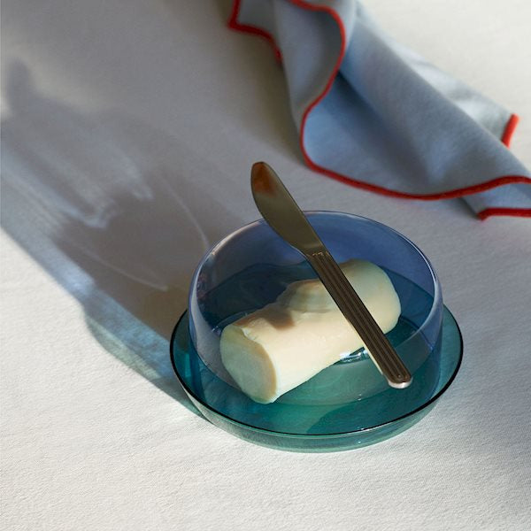 As its name suggests, the 2-in-1 Serving Set is both multifunctional and decorative. Crafted in coloured borosilicate glass, the container is accompanied by an extra part that can be used both as a saucer underneath and a lid on top. Durable and heat-resistant, it is suitable for serving hot or cold food, storing or displaying small items.