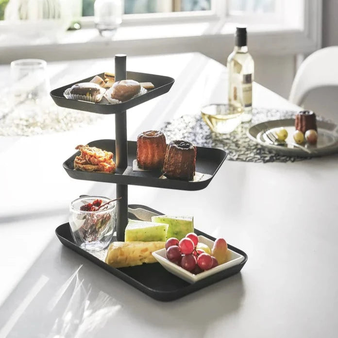 Pile on the sweets with this three-tiered serving stand. The fanning stack of trays make the perfect display for desserts or finger foods, and the modern design suits any tabletop. Perfect for high tea or a fancy brunch.