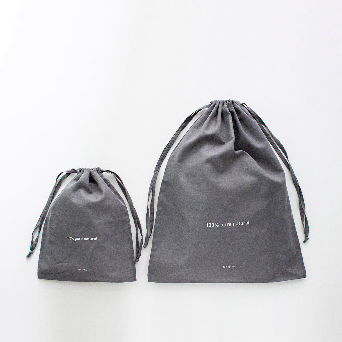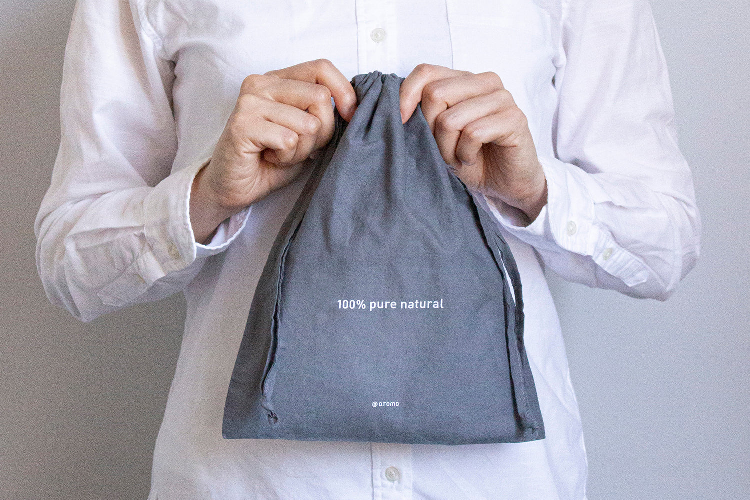Light, grey fabric made of 100% cotton with @aroma logo - sustainable and elegant.