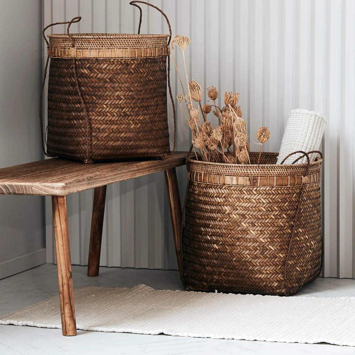 Your living room is instantly updated with these baskets that add a natural touch with their golden, brown shades. Move them around as you like with the delicate handles and use the baskets as a decorative detail as well as elegant storage.