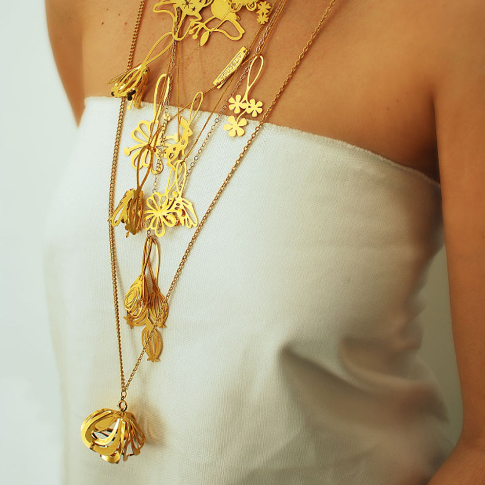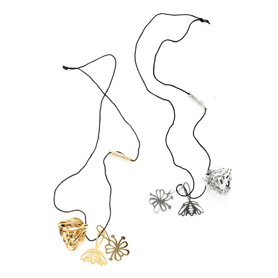 Long time collaborator Tord Boontje has created for Artecnica an iconic nature inspired jewelry collection of 18k gold and silver plated metal. This delightful collection embraces the delicate nature of fine jewelry in a playful manner, representing lovable creatures and whimsical flowers.