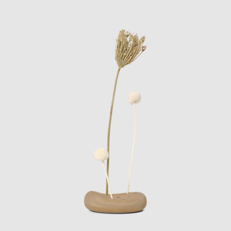 In art, vanitas refers to a genre of still life that celebrates the transience of life. Create your own still life with the Vanitas Flower Stone that, with its various small holes, also nods to the Japanese tradition of Ikebana – the art of flower arranging. The softly curved porcelain stone has a calming expression, making it suitable as a decorative object in your home or for making small arrangements of dried flowers on the dinner table or on the windowsill.