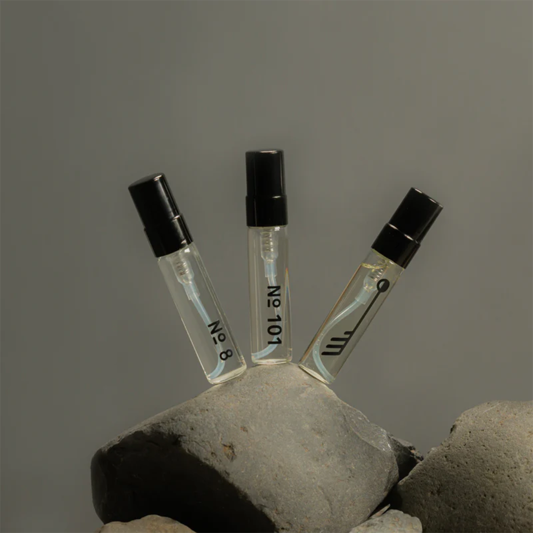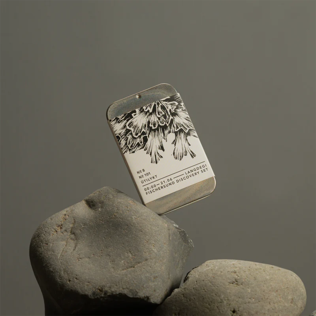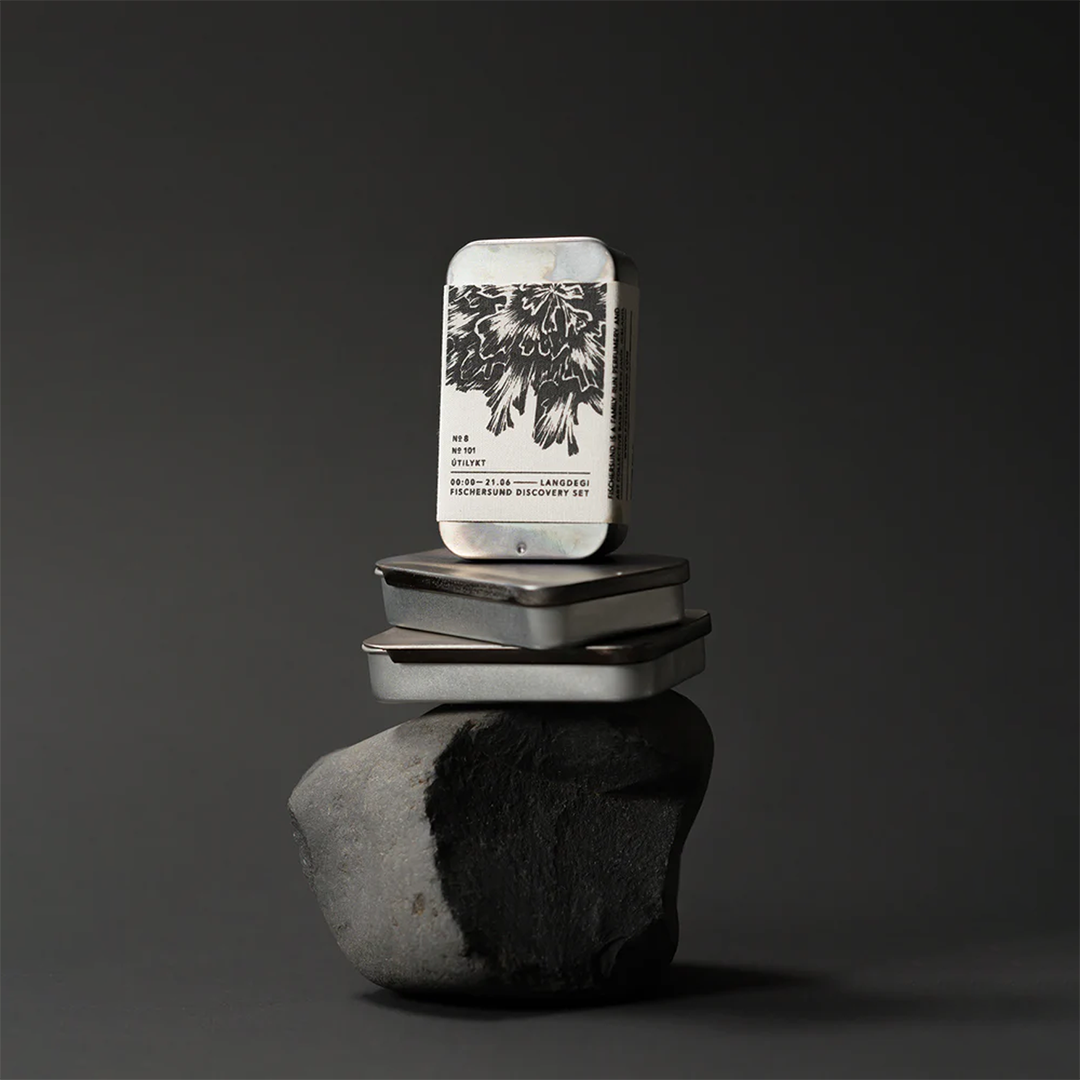 The set is housed in a hand-treated tin box made by our father Birgir, and features fragrances - No. 8, No. 101 and Útilykt. A perfect way to discover your new fragrance favorite.