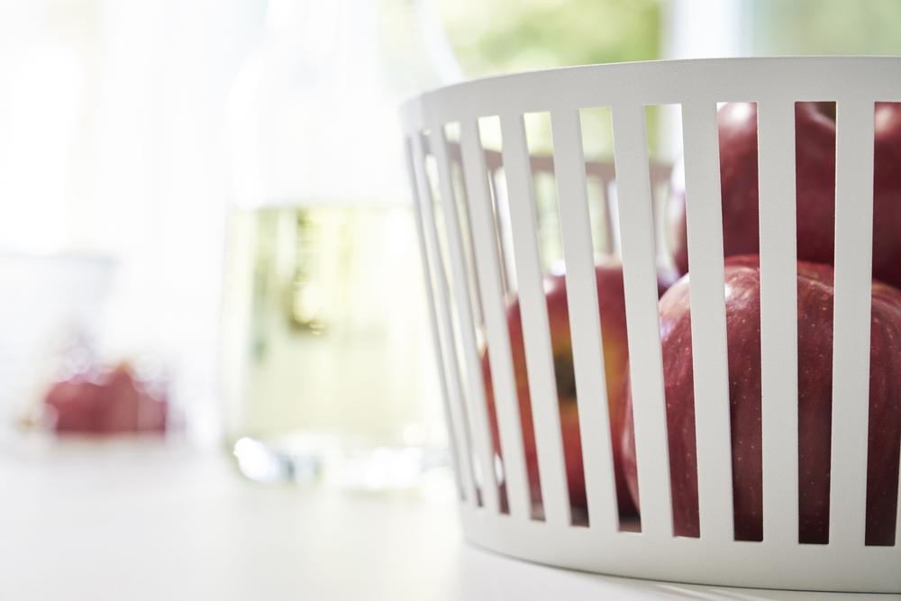 This fruit basket adds a stylish accent to your kitchen or living room.