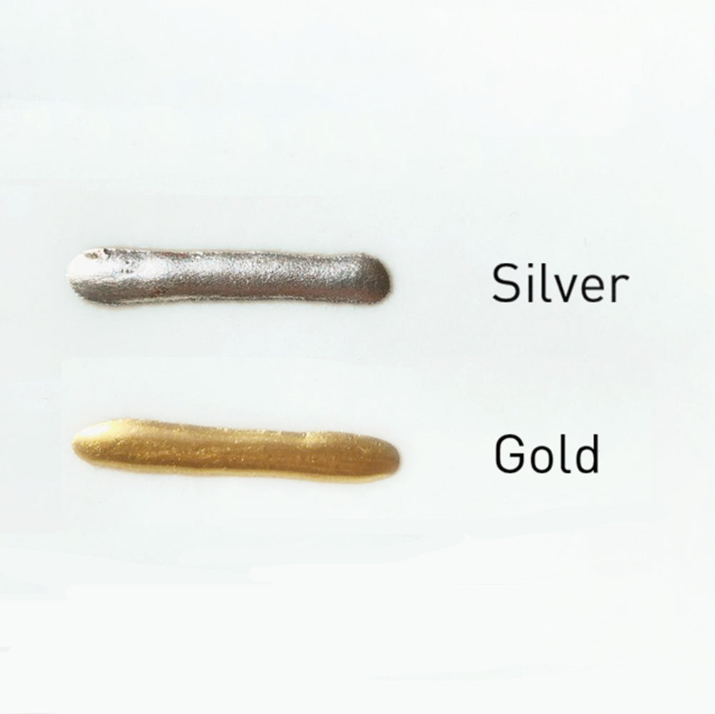 - Two component glue, 4gr gold or silver powder, a brush, bamboo stearing sticks and gloves.
