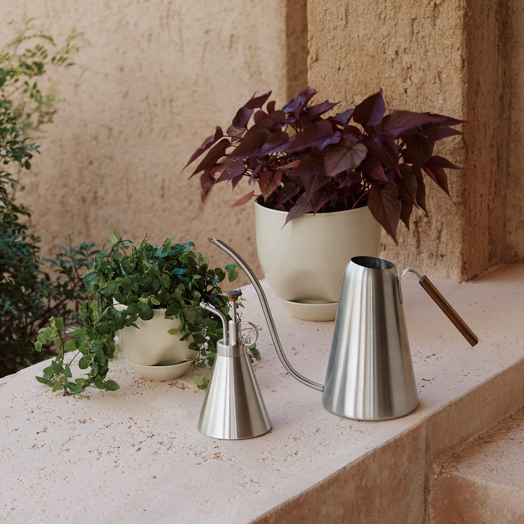 Simply detailed with a wooden top, the brushed stainless steel design is a beautiful helper for caring for your plants.
