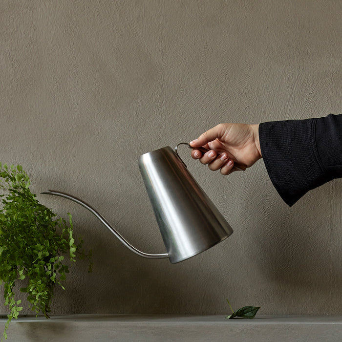 Sleek and elegant, the Hydrous Watering Can features a long pouring spout designed to reach small potted plants or through thick foliage.