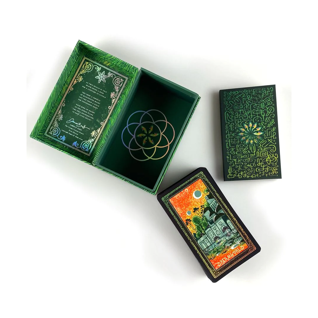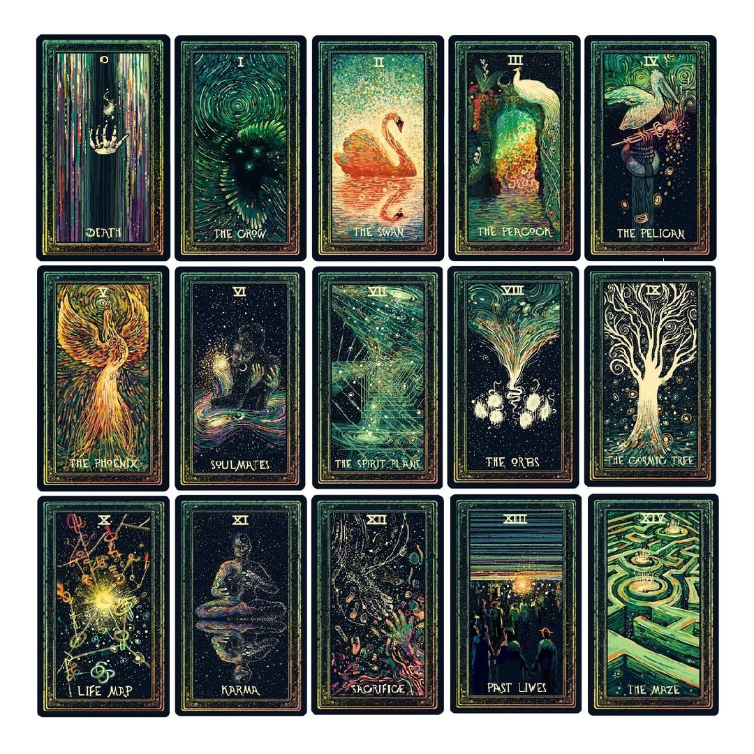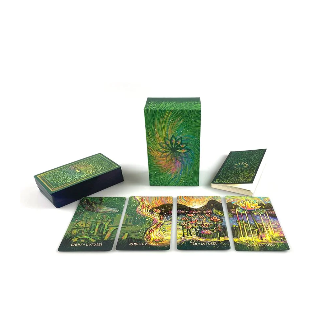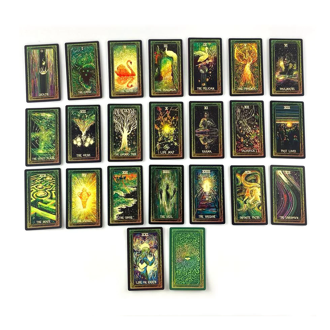 - THE CARDS are approximately 7 x 12cm and all share identical backs. The 79 cards are printed with the highest quality inks on durable card-stock and are finished with a matte UV varnish and edged with labradorite blue edges.