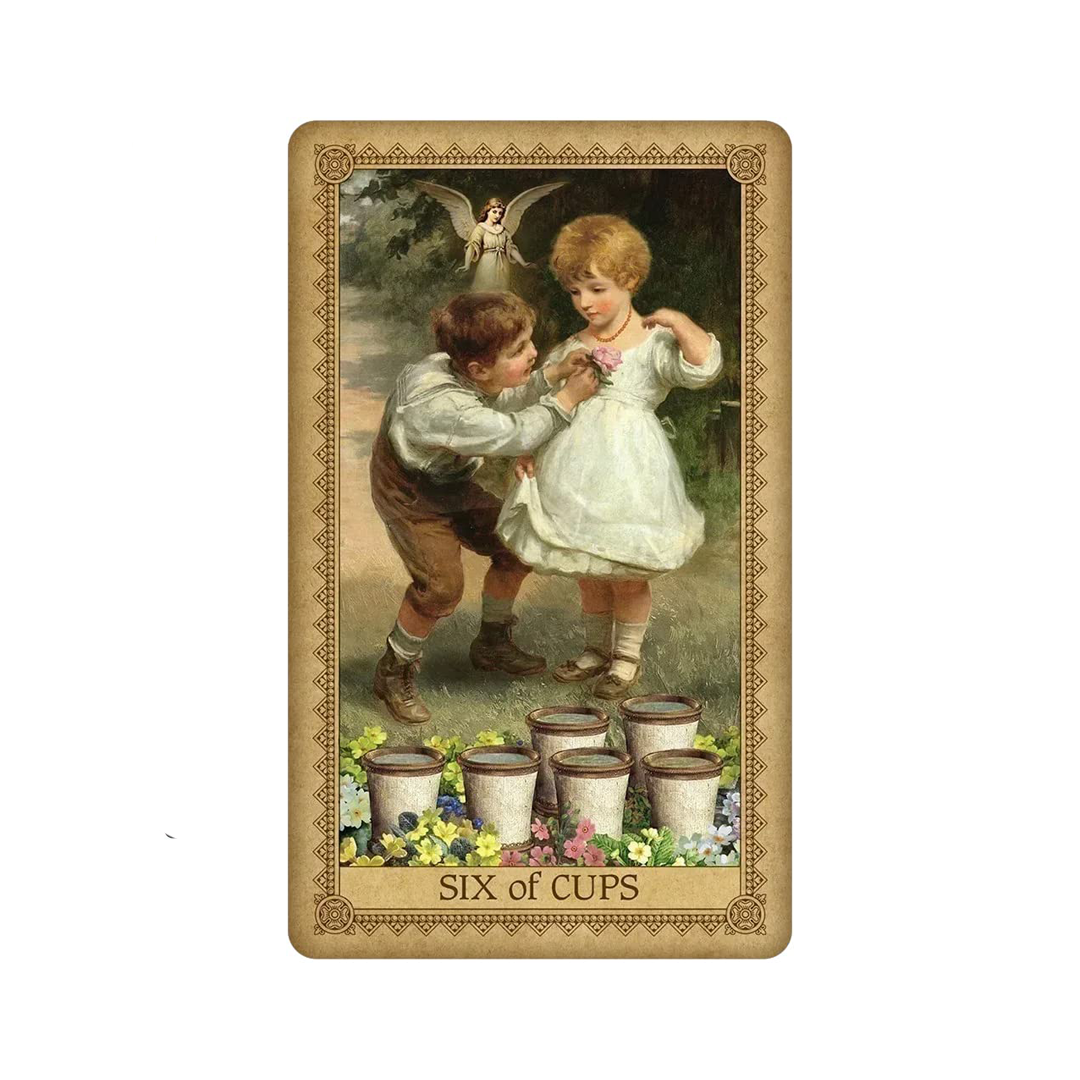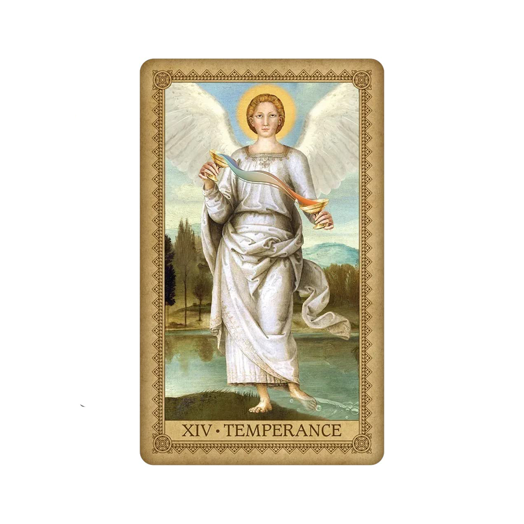 Angels’ spiritual influence over human experience is beautifully portrayed in this gilt-edge deck through classic inspired artwork. The 184-page illustrated guidebook features in-depth descriptions, symbolism and angelic messages. In addition to the 78 tarot cards, two reference cards are included in this glorious set presented in a deluxe box with gold foil accents.