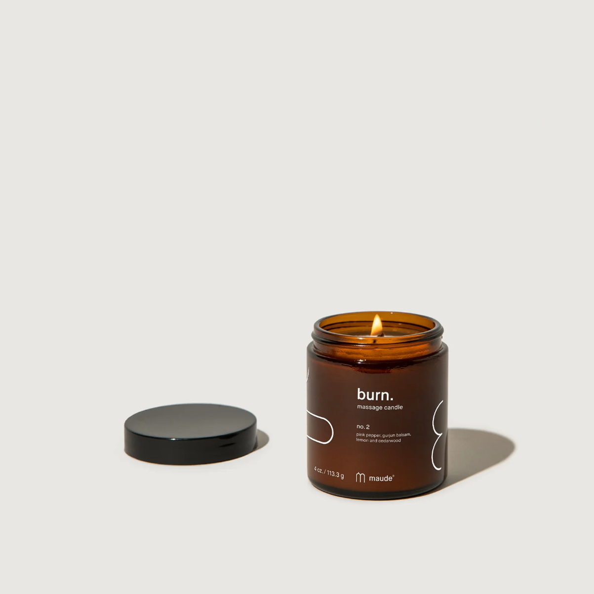 Soy-based massage candle, with bright notes of pink pepper, gurjun balsam, california lemon and virginia cedarwood.