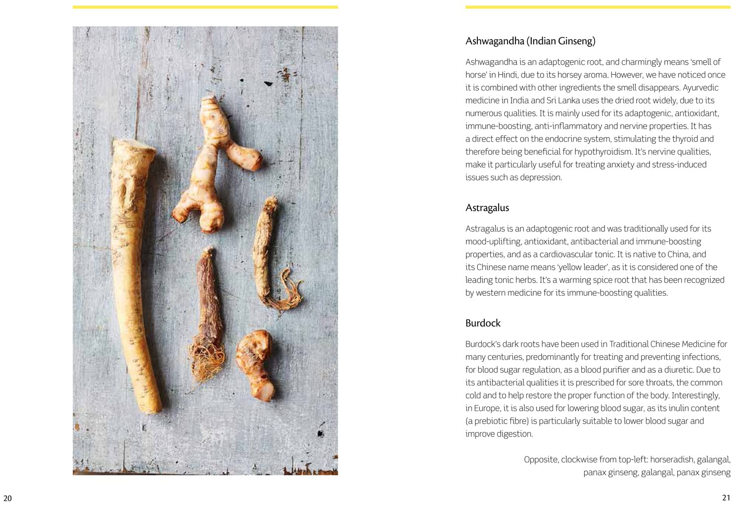 Organised by type of dish, Zoë and Tom reveal the alchemy of roots, their health benefits and where they come from before moving onto recipes that enhance your mood, encourage a healthy gut and, most of all, taste good! There are tonics and elixirs, snacks, main meals and topical recipes to keep you looking and feeling good, inside and out. These recipes are designed to be functional while remaining super simple and fun. There’s everything from golden beetroot latte, ginseng root tea, turmeric granola, immune-boosting and maca bliss balls, plus burdock tea tonic, topical solutions for a brightening face mask and even an Ayurvedic anti-anxiety bath soak. Bring more vibrancy and magic to the food you love with these incredible super root spices.