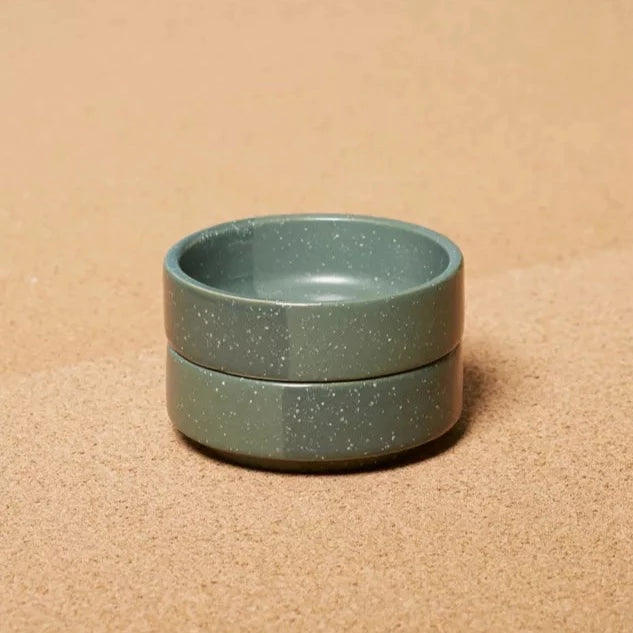 Mini nesting bowl set by the home goods innovators at Umbra Shift. Handmade from natural stoneware with a partial glaze for a modern, one-of-a-kind look, each set comes with 2 miniature bowls that can be stacked together or used separately to suit your needs.