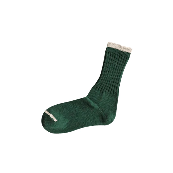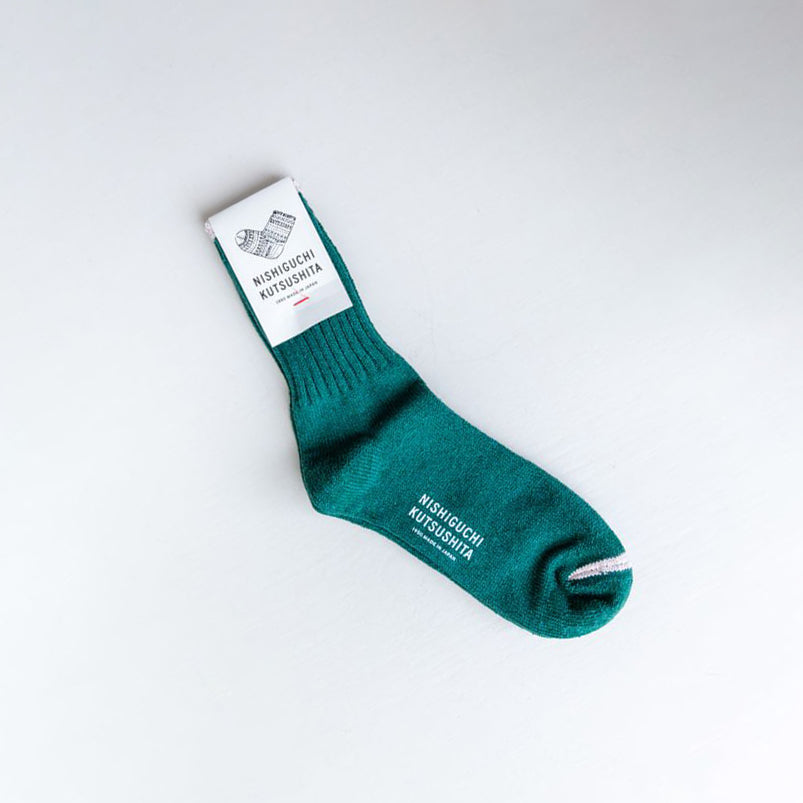 Eco-silk and recycled cotton are blended to create these soft and impressionable socks. The extra fine cotton fibers called virgin cotton that remain after yarn is produced and ran it through a specialized spinning machine. In addition, Nishigushi combined this special yarn with silk thread. Enjoy both the smooth texture of silk and the softness of cotton. These crew-type socks are fluffy and comfy — ideal to wear from spring to summer. The silk absorbs sweat leaving the feet to indulge in the smooth texture of the material.
