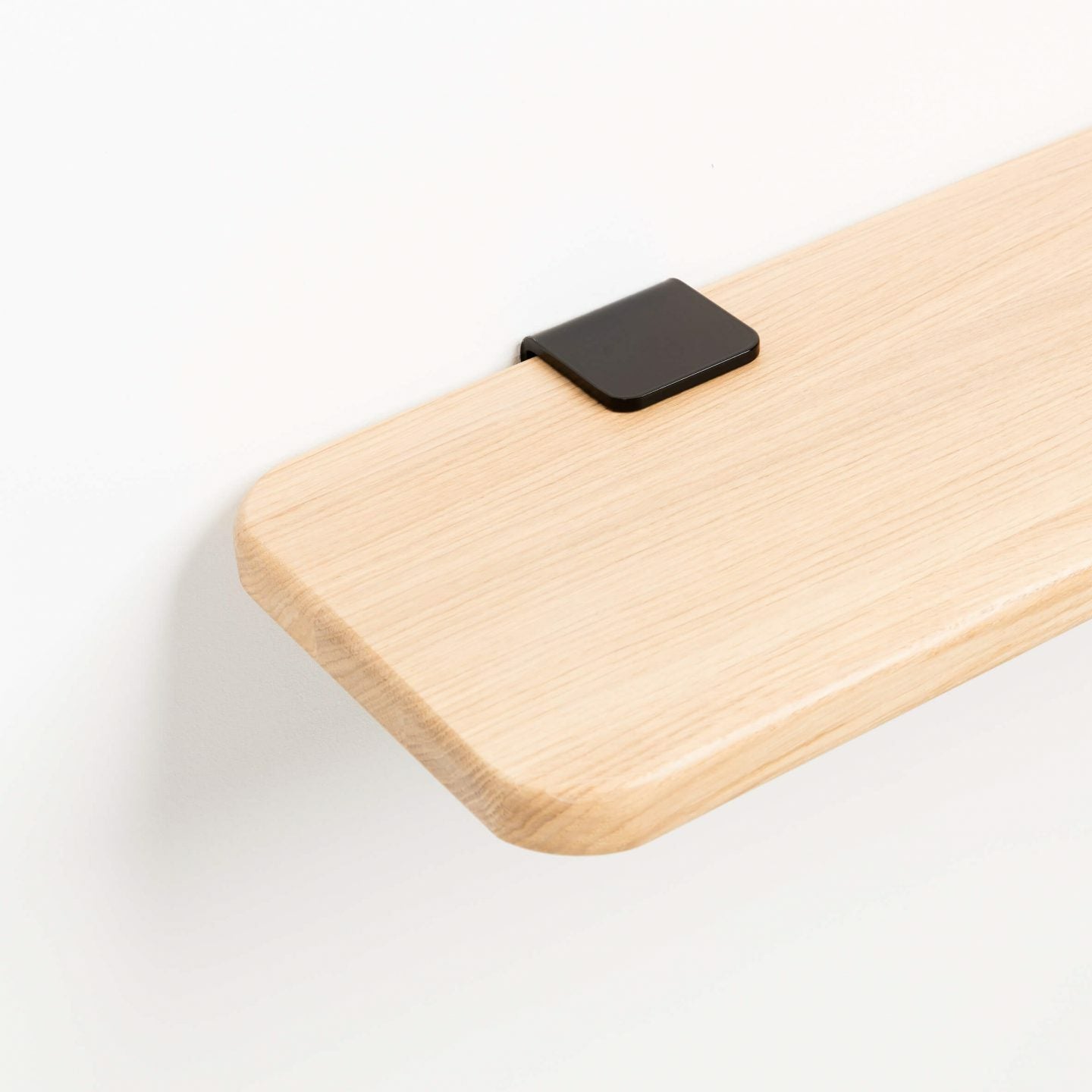 - Shelves: solid oak board (60/90 x 20 x 2,5cm) fixed with 2 wall BRACKET's (sold separately). Thanks to its minimal and sleek design, you’ll be able to place your shelf in any type of interior and in any room of your home.