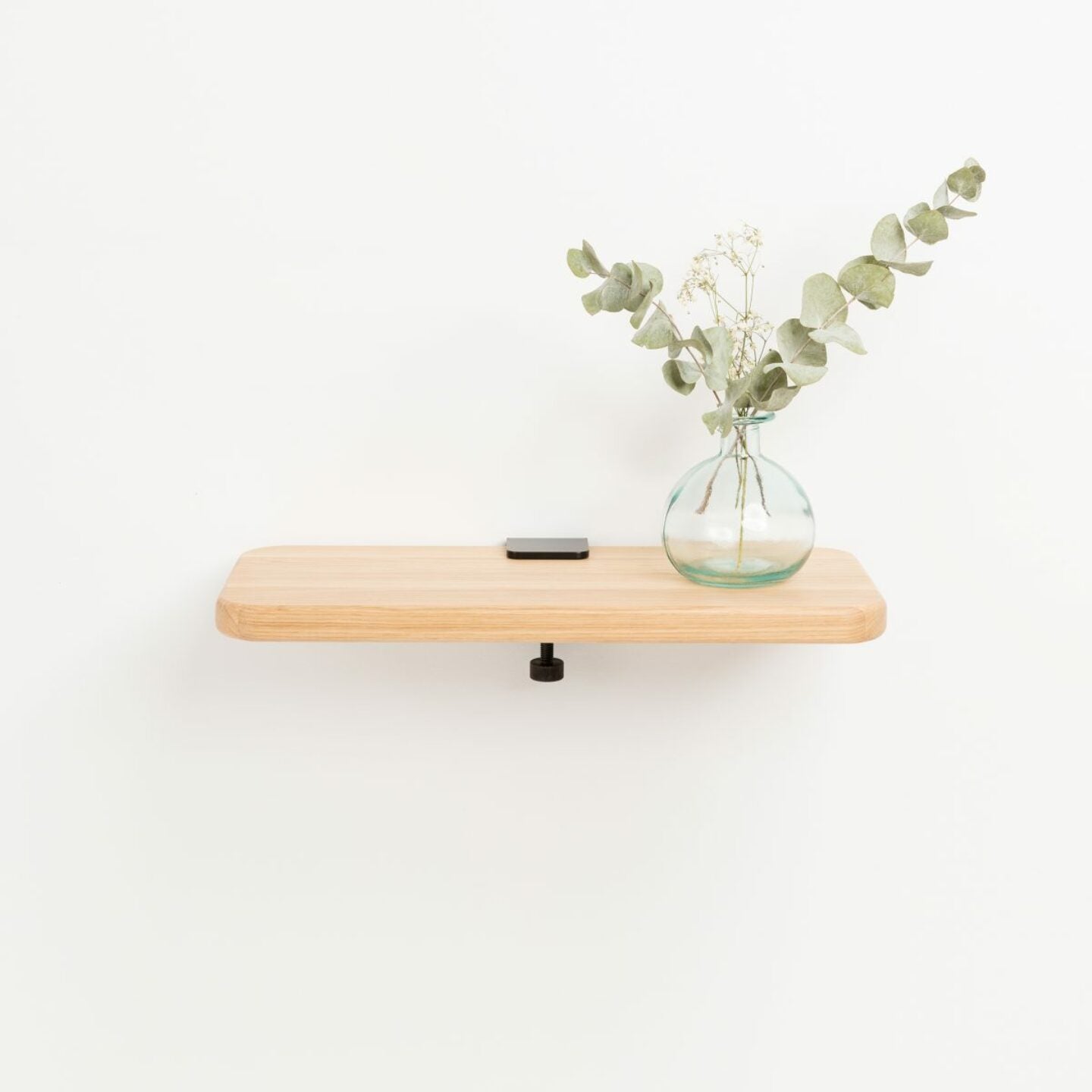 - Bedside tables: solid oak boards to do simple wall-mounted shelves (32 x 27 x 2,5cm) fixed with 1 TIPTOE wall BRACKET (sold separately) wall hook. You can put your glasses, your book or your bedside lamp on it.