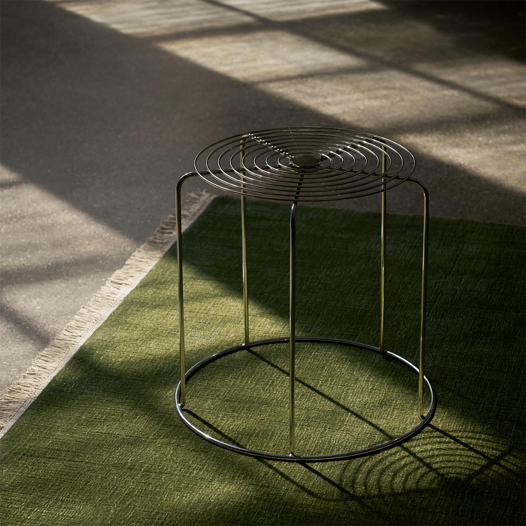 What makes the Wire Stool indicatively Verner Panton is the use of stainless-steel wire to create a simple geometric shape with repeated patterns, in a stackable stool that doubles as a side table.