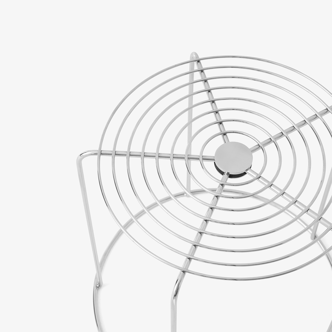 - Production process: The stool is made of stainless steel wire that is bent into circles and spot welded together. The centre plate is made of magnetic steel, allowing for the seat pad to be attached.