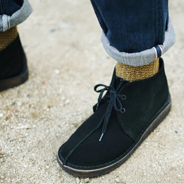 Thick wool socks made with an eco-friendly blend of recycled wool from clothing and virgin cotton made with leftover strands of cotton. They boast the generous thickness of wool socks but are more durable; perfect with boots for outdoor activities like camping and trekking.