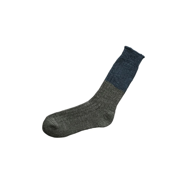 Wool and cotton are gently intertwined to create these wool-cotton socks. The vintage look and comfort maximizes with wear. These rib-patterned socks are created with wool and cotton that are gently twisted into slab style weaving. This type of weaving gives these socks a casual look and the gently intertwined yarn envelops your feet with softness and warmth. The vintage look and comfort maximizes with wear. Wool and cotton absorb the dye at different time frames. We like the variance of tones created by the dyeing process as it adds to this casual and playful look.