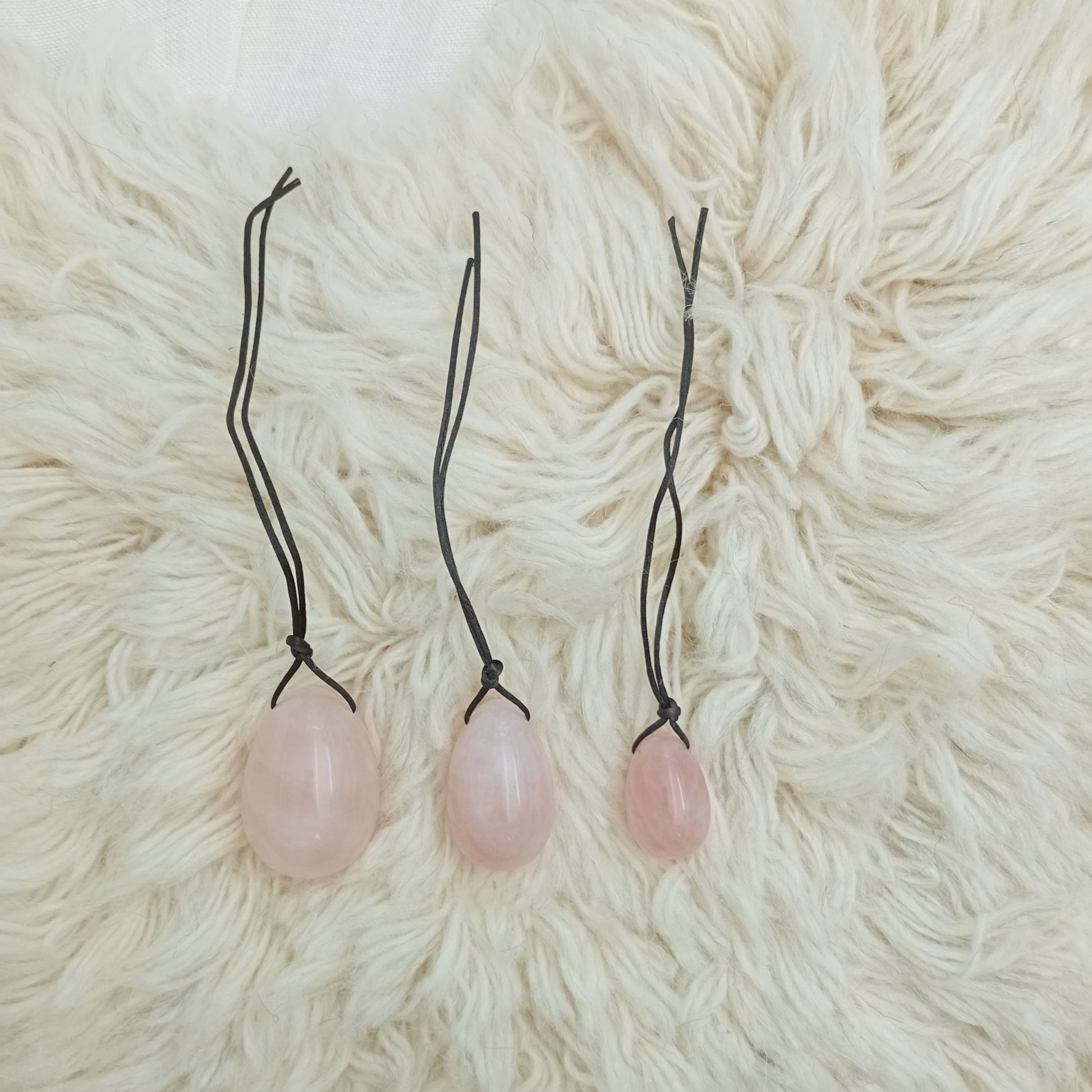 You have three sizes of yoni eggs to practice with: S, M and L. The sizes in centimeters may vary slightly because each product is made by hand, you can use the measurements as guidelines. The smaller the egg is, the more difficult it is to feel and hold the egg. If you are just starting to practice, it is wise to start with the biggest egg.
